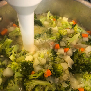 A bowl of creamy, rich, and cheesy broccoli soup is irresistible. But sometimes I think it's too much of a good thing. Here's my version with a little more veggies and a little less of "the creamy." It's healthy and delicious and I love it.