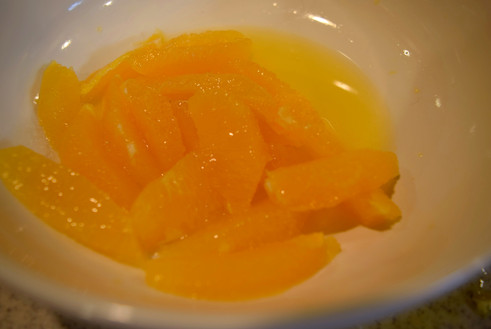 Slice both ends of an orange off and stand on a plate or cutting board. Use a knife to cut along the curve of the fruit, removing the skin and white layer. Hold the orange over a bowl and cut in between the membrane to remove the sections of the orange. Repeat the process with the second orange and grapefruit.