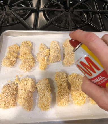 When you spray the fish don't hold the can too close to the pieces or else too much oil will get on the fish. Bake for about 10 minutes and check for doneness. The fish should be a little flaky. If it isn't cooked a couple of more minutes. Don't overcook.
