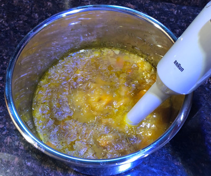 Now using the hand blender process the soup until it is smooth. I like to take the insert out of the Instant Pot before using the hand blender. This way I don't drip all over the pot. Once the soup is blended taste to see if it needs salt.