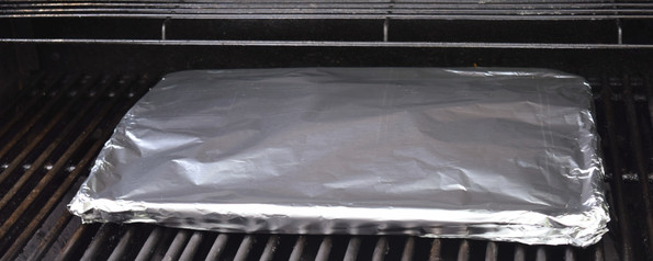 Cover the pan with foil and place it on a grill. Close the lid and cook at 325 degrees for 3 hours. Transfer the ribs directly to the grill and cook ten minutes per side to crisp.