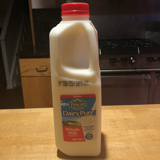 The tart is almost ready for the oven. Now just lightly beat the egg and add the milk. Brush the pastry (not the fruit) with the egg mixture. You will not use most of the mixture. Maybe make some scrambled eggs while the tart is in the oven?