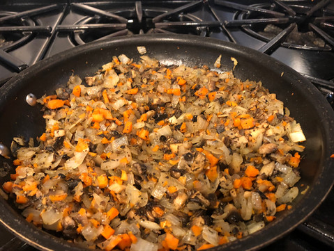 Add the oil, onions, and carrots to a pan and season with salt and pepper. Cook for a few minutes, and when the vegetables start to get tender, add the mushrooms, oregano, thyme and season with more salt and pepper. Continue cooking until the mushroom juices mostly evaporate. Set the vegetables aside and completely cool.